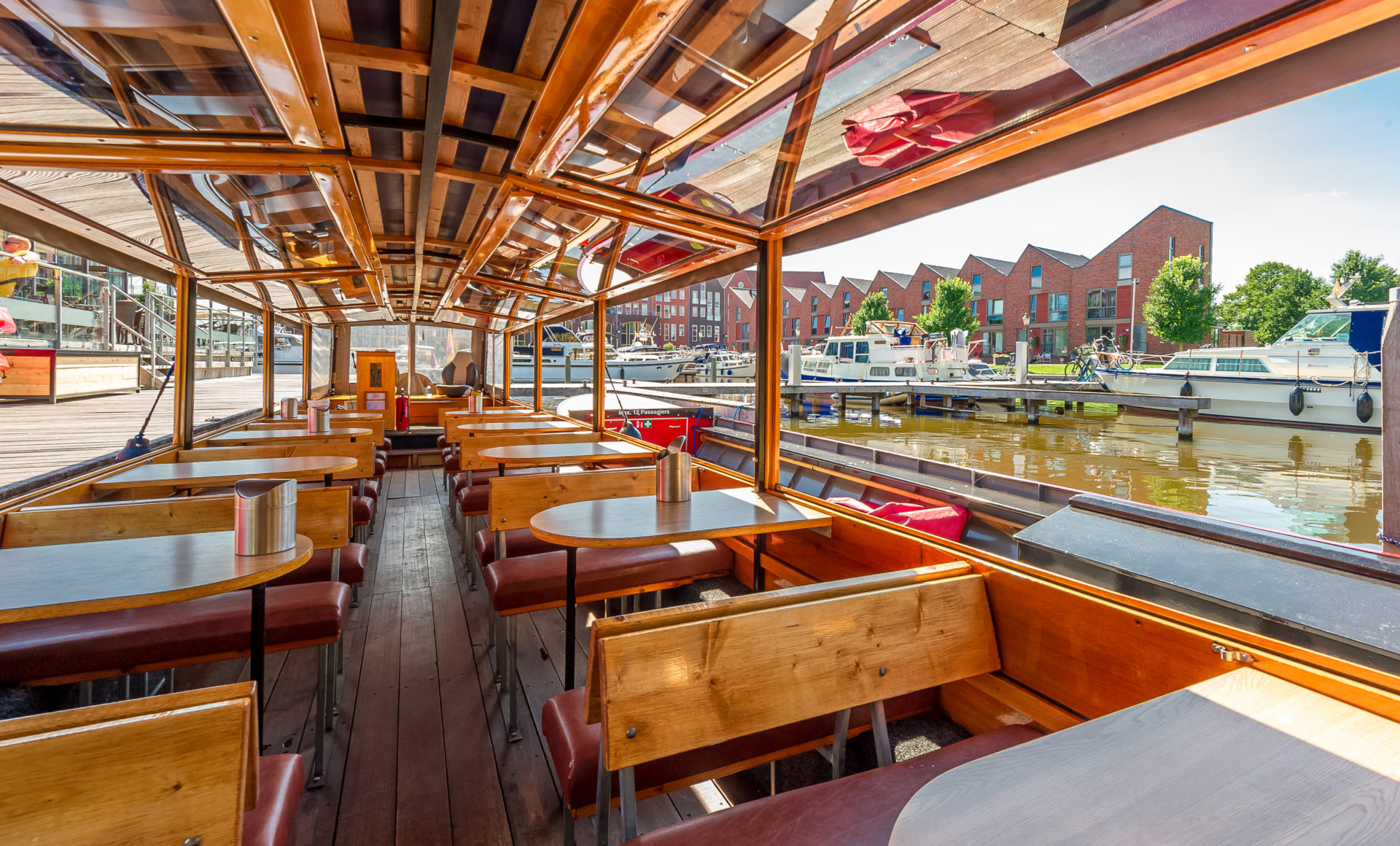 Ons Paviljoen biedt plaats aan 70 personen in ons restaurant, 25 personen in de serre en daarnaast hebben wij nog plaats voor 100 personen op ons prachtige terras aan het water.